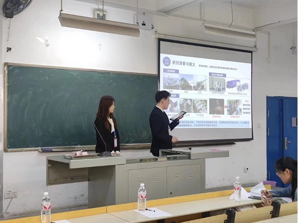 本科生郑业兴(右)、陈晓璐(左)参加自由命题项目决赛答辩现场
