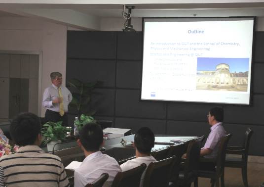 2015年5月28日,澳大利亚昆士兰科技大学化学、物理与天美传媒 院长John Bell教授来天美传媒 访问,并为天美传媒 师生做了一场题为“Education and Research in the School of Chemistry, Physics and Mechanical Engineering at QUT”的学术报告。
