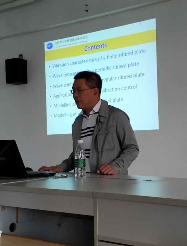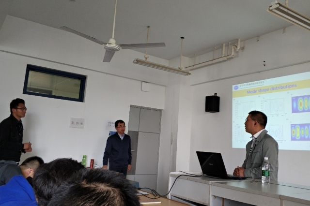 本次讲座主要介绍了对不同边界条件夹筋板结构振动模型的求解过程和求解方法。讨论了夹筋板结构的振动特性,周期/非周期结构的波传播特性以及主要控制机理。林教授以船舶的振动模型为例,介绍了振动控制在实际工程中的应用和意义,并与提问的同学展开了深入讨论,让天美传媒 学生对振动控制有了新的认识。