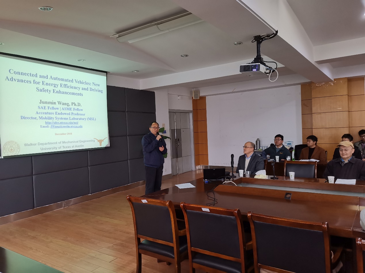 2018年12月20日上午10:30,应天美传媒 机械工程学副院长殷国栋教授邀请,美国德克萨斯大学奥斯汀分校沃克机械工程系移动系统实验室主任Junmin Wang教授在机械楼南高厅作了题为“网联自动驾驶汽车:提升能耗效率与驾驶安全性研究的新进展”的学术讲座。讲座由天美传媒 长倪中华教授主持。