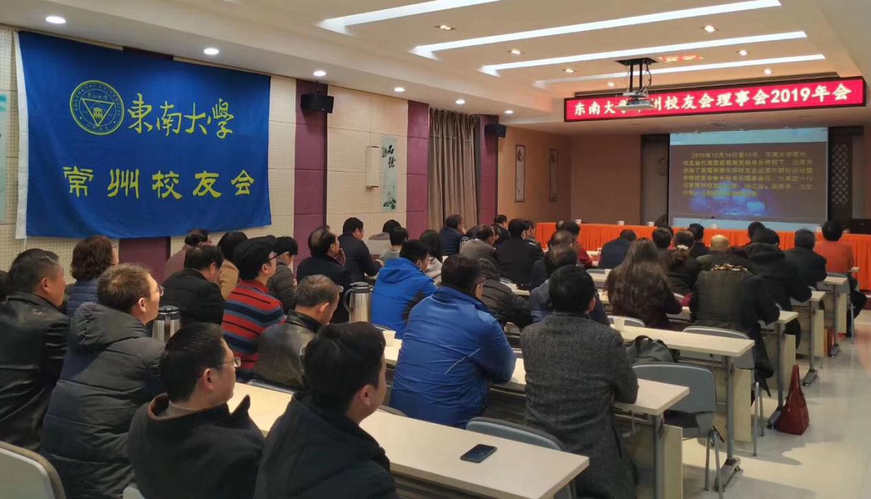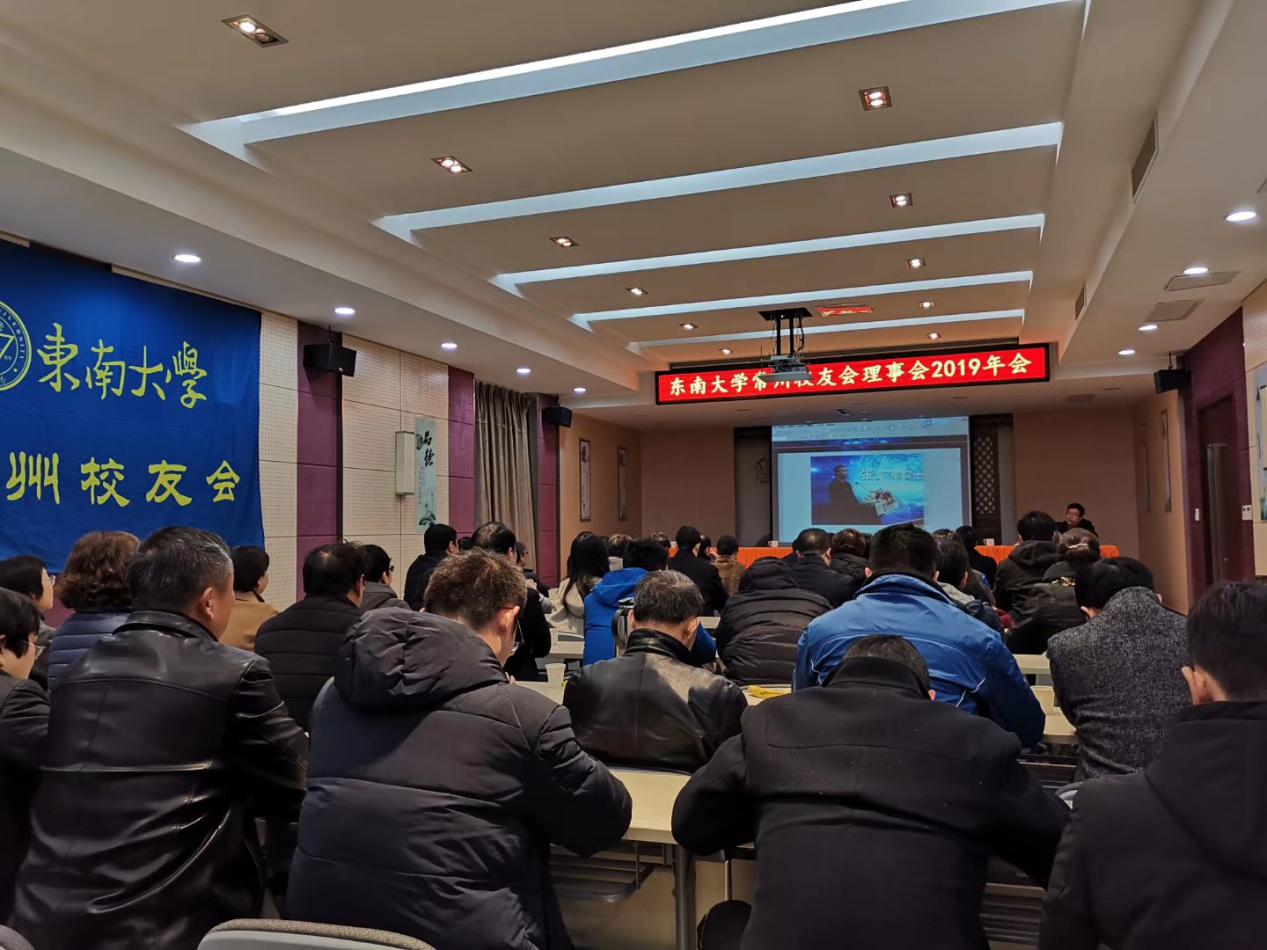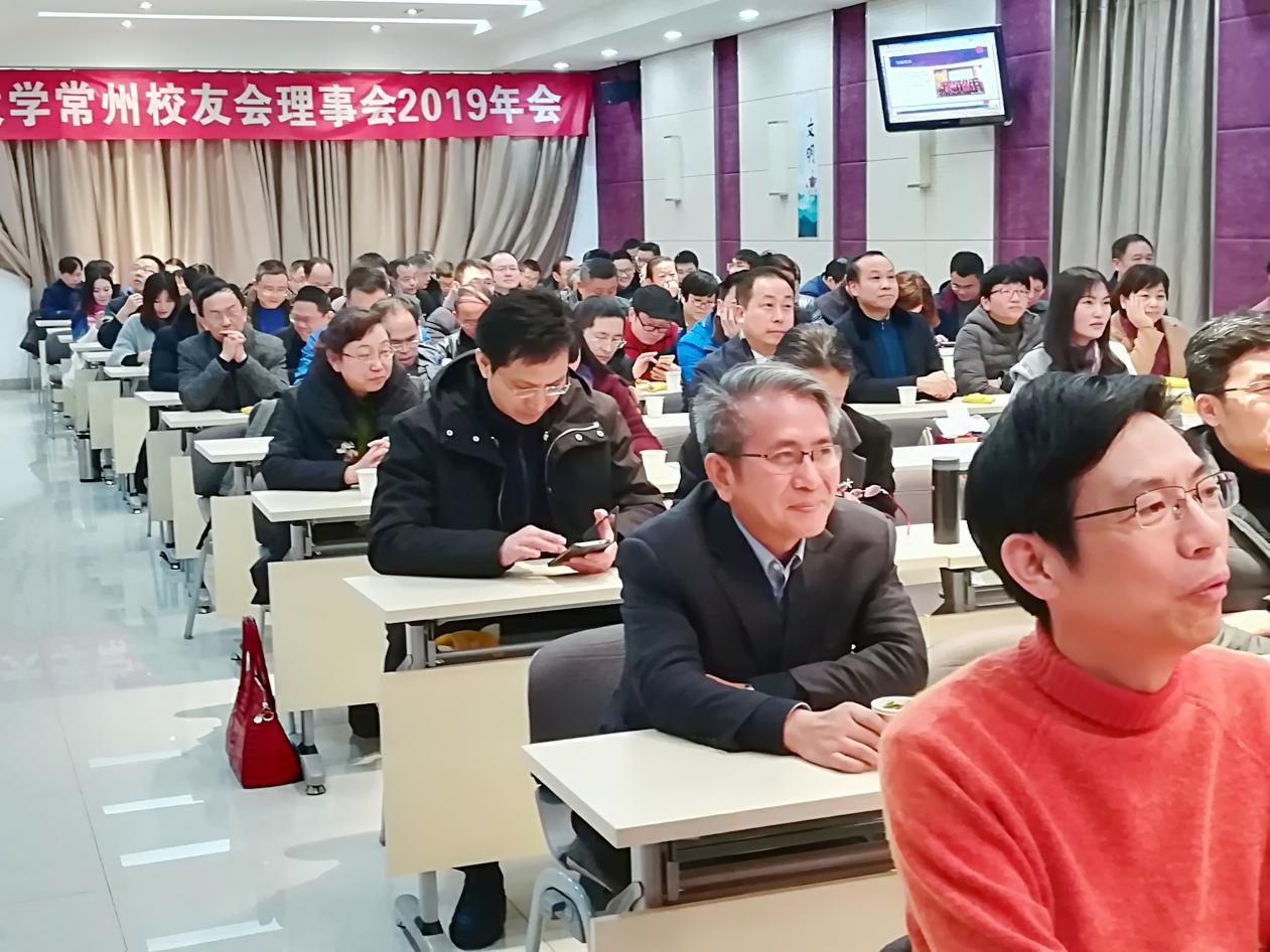 天美传媒 常州校友会2019理事年会在雄壮的天美传媒 校歌声中开始,葛维克秘书长主持了会议并向大会报告了一年来东大常州校友会的主要工作,在2018年里,东大常州校友会不断完善校友会组织架构,广泛联系各界东大常州校友,在办好经典活动如:“学长送新生、起航向东大”、“中秋迎新夜话”及“六朝松相亲会”等活动基础上,积极探索开展特色活动,如募捐《恽英_常州校友会奖助学金》,协助编辑《从青果巷到四牌楼》回忆录和出版及发行认购活动,中学生走进天美传媒 校园,医学分会继续组织了对老校友的重阳义诊活动及走进老区义诊活动,电子信息分会以及建设分会也进一步探讨和尝试开展了多次丰富多彩的“走进校友企业”的互动分享活动,在挖掘校友资源,助力校友及校友企业创新发展方面也取得了可喜进展。