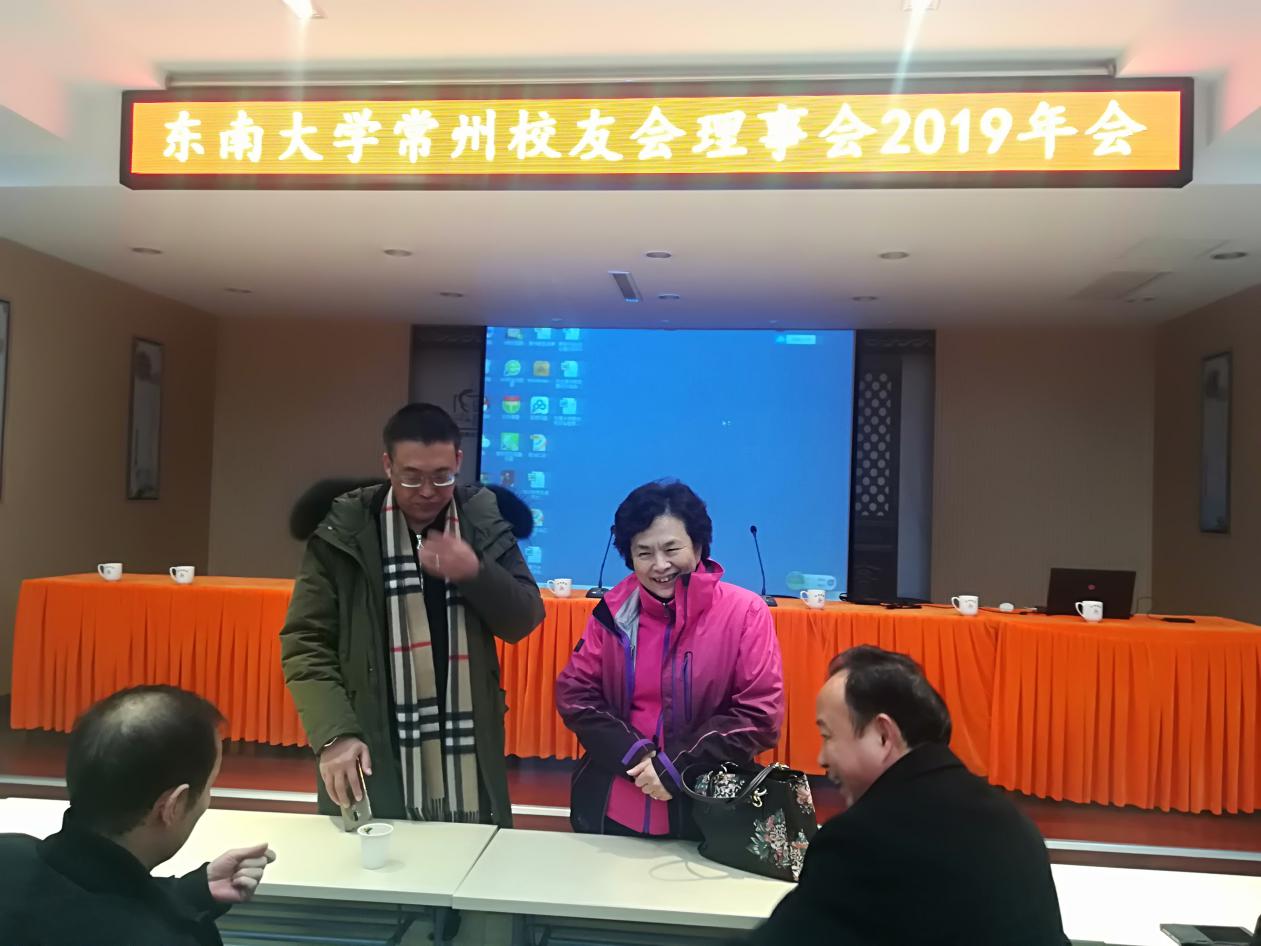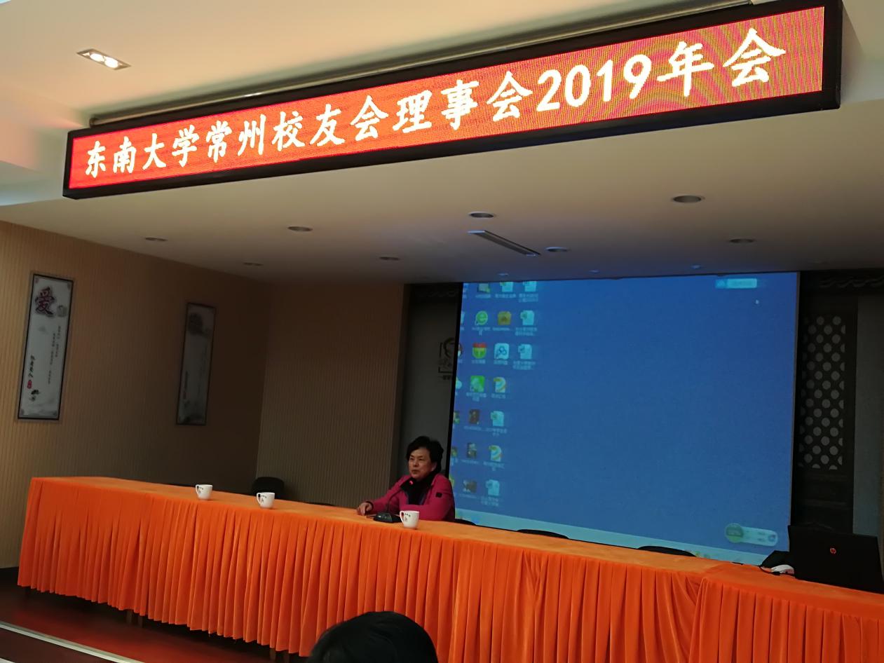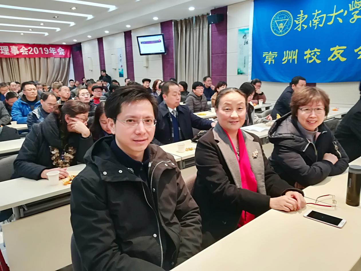 天美传媒 常州校友会2019理事年会在雄壮的天美传媒 校歌声中开始,葛维克秘书长主持了会议并向大会报告了一年来东大常州校友会的主要工作,在2018年里,东大常州校友会不断完善校友会组织架构,广泛联系各界东大常州校友,在办好经典活动如:“学长送新生、起航向东大”、“中秋迎新夜话”及“六朝松相亲会”等活动基础上,积极探索开展特色活动,如募捐《恽英_常州校友会奖助学金》,协助编辑《从青果巷到四牌楼》回忆录和出版及发行认购活动,中学生走进天美传媒 校园,医学分会继续组织了对老校友的重阳义诊活动及走进老区义诊活动,电子信息分会以及建设分会也进一步探讨和尝试开展了多次丰富多彩的“走进校友企业”的互动分享活动,在挖掘校友资源,助力校友及校友企业创新发展方面也取得了可喜进展。