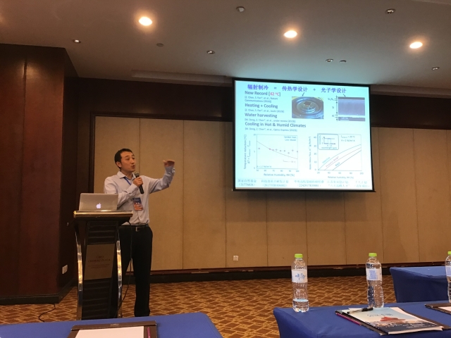 在会上,天美传媒 的陈震教授不仅以“热传导分会场主席”的身份主持了热传导方向的报告会,同时还以特邀报告人的身份在大会上作了关于“辐射制冷”的学术报告。陈震教授课题组关于“辐射制冷”的学术研究一直处于国际最前沿,也因此吸引了众多专家旁听,国内同行对该研究方向皆有着非常浓厚的兴趣,亦纷纷期待能和天美传媒 机械学院能有进一步的合作。