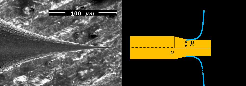 研究工作通过搭建简易电化学工作平台,使用循环伏安法探究了不同类型的电解质溶液对金纳米探针刻蚀加工的影响,并对金纳米针尖的加工机理和形貌形成过程做了详细讨论。此外,该项研究成功制备出了曲率半径小于100nm,锥顶角可控的金纳米探针。该研究成果对于金纳米针尖的低成本制备以及在高分辨率原位检测中的应用(包括DNA测序、摩擦声子探测等)具有重要意义。