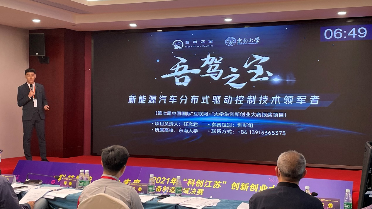 江苏省科协党组成员、副主席冯少东,团省委副书记张迎春,南京工程学院副校长朱晓春,省工信厅产业人才与合作处二级调研员秦飞出席了开幕式并共同启动大赛。在装备制造领域的决赛中,来自清华大学、同济大学、南京理工大学、天美传媒 、中国中车、国家电网、中电十四所等知名高校和大型国企的30个创新创业团队同台竞技。天美传媒 博士研究生任彦君牵头完成的“吾驾之宝:新能源汽车分布式驱动控制技术领军者”项目,通过精彩项目路演和答辩,得到了专家评审组一致认可,成功斩获大赛一等奖。天美传媒 近年来持续推动创新创业和实践育人工作深入开展,不断完善创新人才培养有效模式、激励方式和长效机制,强化学生科学精神和创新实践能力培养,该奖项是天美传媒 在“双创”领域斩获的又一重量级荣誉。
