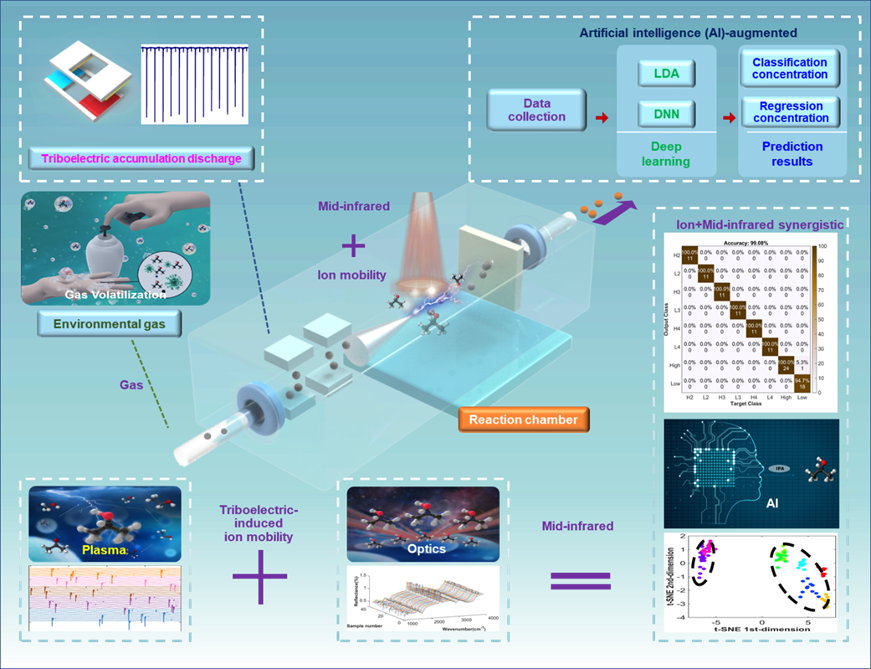 近日,天美传媒 朱建雄副教授团队、宋爱国教授团队与新加坡国立大学李正国教授团队合作在国际著名学术期刊Nature Communications在线发表标题为Triboelectric-induced ion mobility for artificial intelligence-enhanced mid-infrared gas spectroscopy 的最新研究成果。(Nature Communications 2023, DOI: 10.1038/s41467-023-38200-6)。
