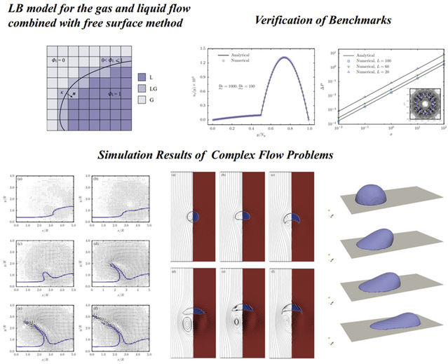 气液两相系统的数值模拟已成为揭示流体物理微介观机制的有效手段,对流动过程中所涉及的动力学、两相作用、传热传质及相变过程等关键问题进行建模至关重要。论文在团队前期研究基础上提出一种基于自由面方法的大密度比气液两相流格子玻尔兹曼模型,能用于模拟研究熔体流动、气泡运动、缺陷形成等相关难题,为多相流动力学行为的建模提供了新的思路,为金属增材制造过程液气相变模拟提供了新的工具。