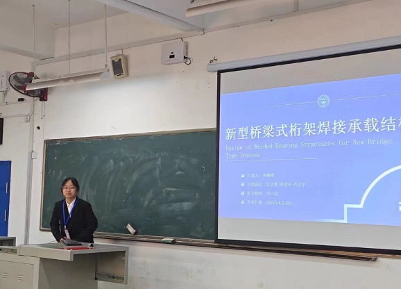 本科生郑业兴(右)、陈晓璐(左)参加自由命题项目决赛答辩现场