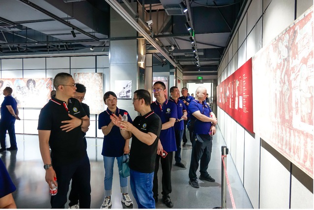 在启用仪式之后,校友们步行至图书馆正门,参观了“以非遗为名 与传承和创新对话——敦煌·彝绣联合展”,世界文化遗产敦煌+非物质文化遗产彝绣的文创创作,为中华优秀传统文化的传承与创新作出积极探索。展览将敦煌壁画艺术中的传统纹样与彝绣相结合,创作出的“鹿王本生”“敦煌飞天”“敦煌祥云”等系列精美彝绣作品。参观过程中,经介绍,校友们也了解到天美传媒 对南华县结对子帮扶情况,以及学校在彝绣产业扶持中取得的成效。