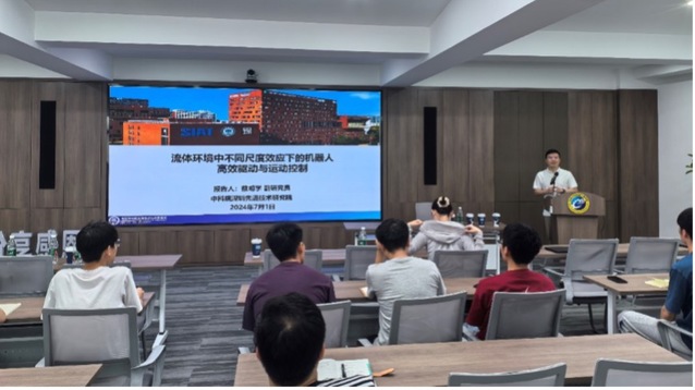 蔡明学老师介绍了在机器人设计、运动建模、感知、控制决策及优化等方面的研究工作。探讨了在流体环境中,不同尺度效应对机器人高效驱动与运动控制的影响,重点研究了大尺度水下仿生游动机器人和小尺度磁控游动机器人。首先,针对大尺度水下仿生游动机器人,分析了其运动机制和驱动方式,并通过设计运动控制算法、导航算法及自主作业算法,实现了在复杂海洋环境下的机器人作业任务,在水下探测及救援任务中具有广泛的应用前景。针对小尺度磁控游动机器人的高效驱动,提出了一种可重构的磁驱动系统,设计了基于多目标优化的磁场多模态调控机制,并提出了基于深度学习和强化学习的控制策略,实现了机器人在复杂流体环境中的精准操控,展示了其在生物医学领域中的潜在应用。