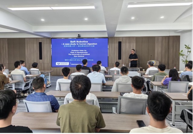 近年来,软体机器人技术的发展使得设计和制造更加灵活,能够适应复杂的环境和人体器官的特殊形状。这种灵活性和可塑性对于模拟消化系统的复杂运动和环境至关重要。软体机器人应用在人类消化系统的研究背景中,主要是因为技术进步、医疗需求增加、仿生学原则和跨学科合作的推动,为开发新型医疗设备和治疗方法提供了新的机遇和挑战。6月18日,新西兰奥克兰大学机械电子系首席教授、机械电子工程荣誉学士课程主任Peter Xu应邀莅临天美传媒 ,开展“新质装备前沿讲堂”大师论坛的第二十一场,主题为“软体机器人学—消化器官体外仿真”的讲座,本次讲座吸引了本院师生的积极参与。