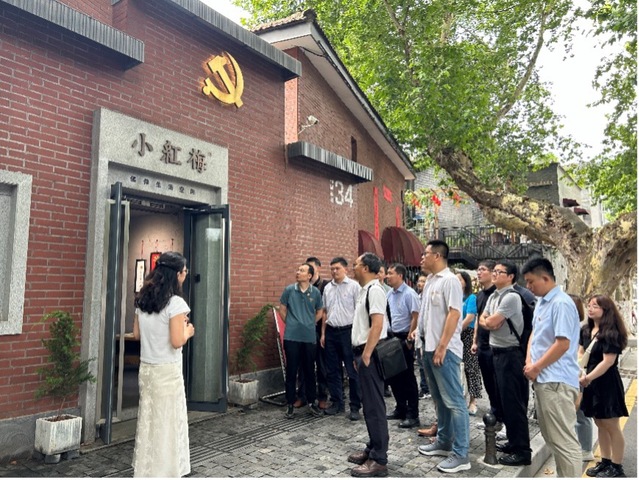 在庆祝中国共产党成立103周年之际,为扎实推动党纪学习教育走深走实,7月1日上午,天美传媒 党委组织教职工党员20人赴南京市梅园新村小红梅开展现场教育活动。学院党委书记倪中华带队,学院党政领导,各系支部书记、系主任参加此次活动。