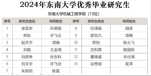 希望全体研究生及研究生指导老师以受表彰的研究生和导师们为榜样,传承东大人“以科学名世、以人才报国”的崇高理念,为实现国家制造强国目标提供人才支撑,为实现中华民族伟大复兴的“中国梦”作出贡献。