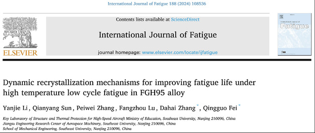 近日,航空航天系费庆国教授团队在金属高温疲劳领域取得重要进展,相关研究成果以“Dynamic recrystallization mechanisms for improving fatigue life under high temperature low cycle fatigue in FGH95 alloy”为题在疲劳研究领域TOP期刊《International Journal of Fatigue上发表。