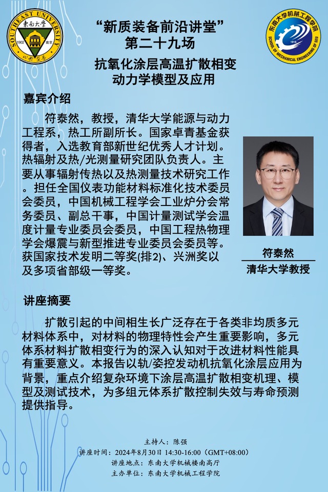 “新质装备前沿讲堂” 第二十九场:符泰然教授——抗氧化涂层高温扩散相变 动力学模型及应用