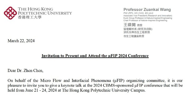 在刚刚过去的2024年微流体与界面现象(Micro Flow and Interfacial Phenomena)学术会议上,天美传媒 陈震教授受邀作为keynote报告人出席。