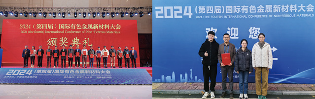 2024年11月22日-24日,第四届国际有色金属新材料大会(ICNFM)在中国郑重顺利召开。天美传媒 2020级博士研究生毛士麟同学荣获“新材料优秀青年奖”和“ICNFM优秀论文奖”。