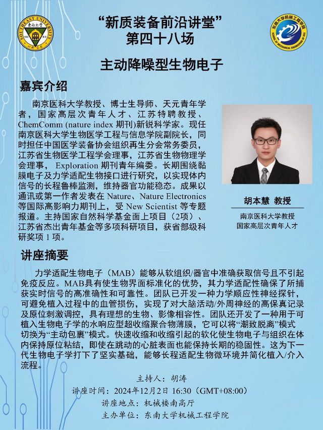 “新质装备前沿讲堂”第四十八场:胡本慧教授——主动降噪型生物电子