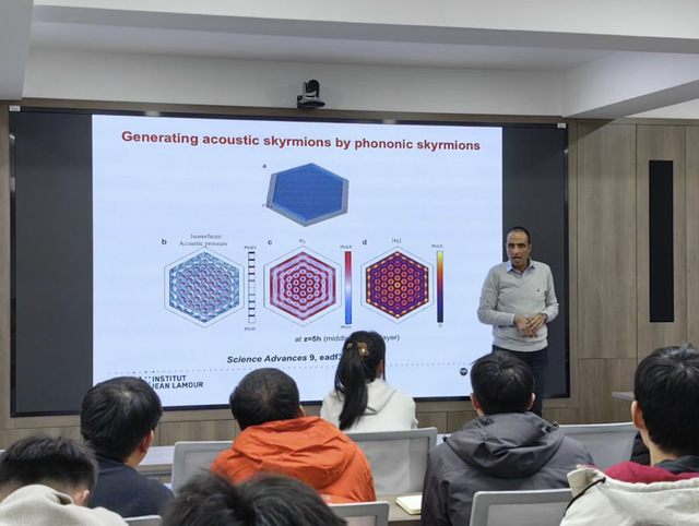 2024年12月10日,Badreddine Assouar教授应邀来天美传媒 南高厅作题为《Phononic Skyrmions: A New Horizon for Structuring Sound and Vibrations?》的学术报告。