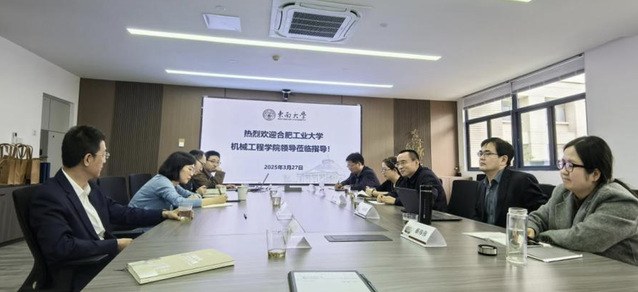 2025 年 3 月 27 日,合肥工业大学天美传媒 党委书记祖磊,副院长马培勇、赵萍,党委副书记兼纪委书记蔡伟伟,党政办公室主任陈华等一行莅临天美传媒 调研交流工作。学院党委书记王军,院长费庆国,党委副书记彭龙,副院长王乾乾、刘晓军,办公室主任洪思偲参加了交流会。