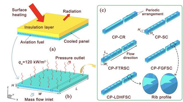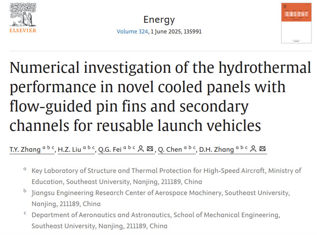 近日,天美传媒 航空航天系费庆国教授团队在热力学领域TOP期刊《Energy》(中科院一区TOP期刊,IF=9.0)上发表题为“Numerical investigation of the hydrothermal performance in novel cooled panels with flow-guided pin fins and secondary channels for reusable launch vehicles”的研究成果,提出了一种用于可重复使用飞行器热防护的带有导流针翅和二次流道的微通道换热冷板。