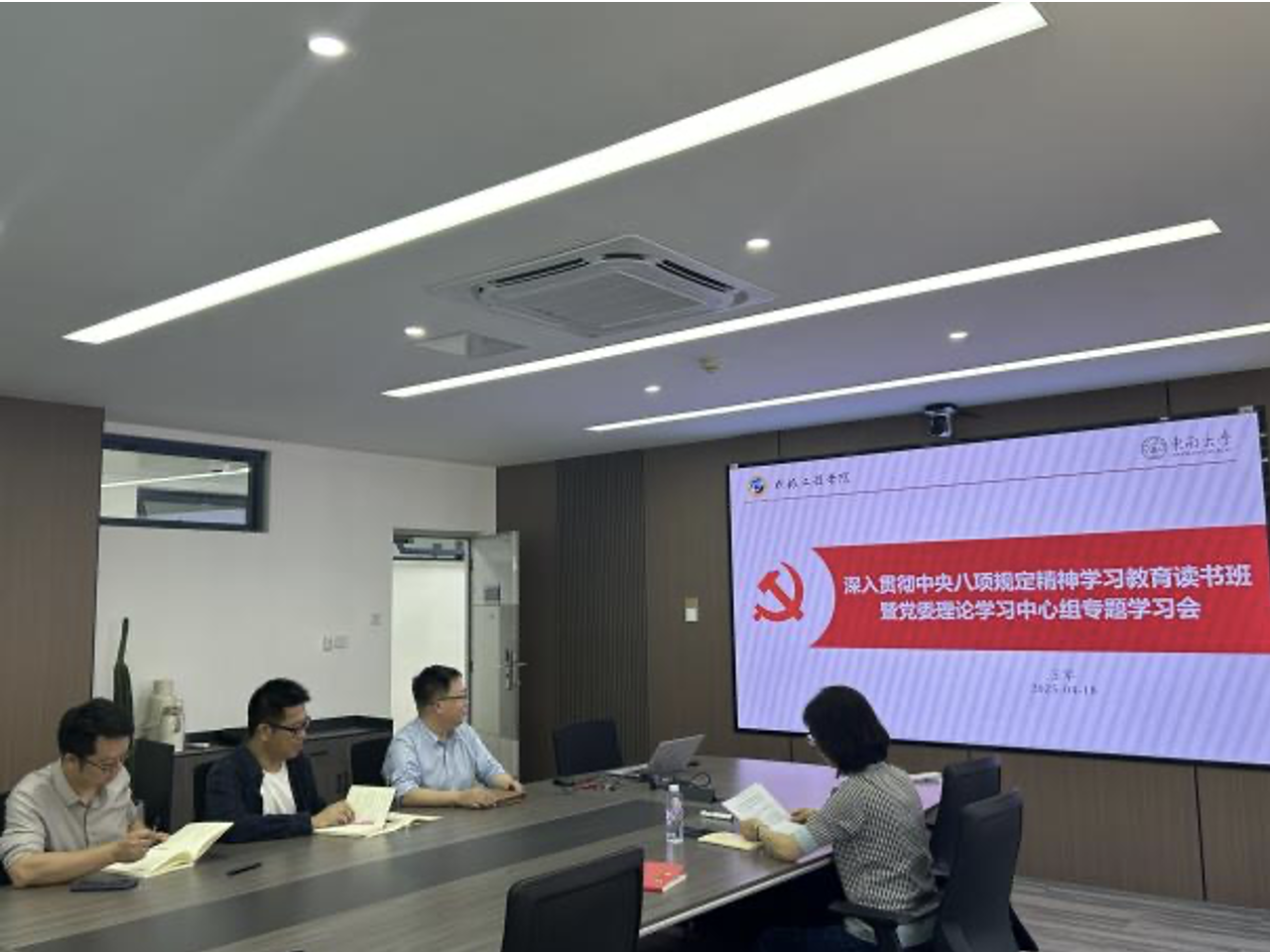 4月18日下午,天美传媒 举行领导班子深入贯彻中央八项规定精神学习教育读书班暨理论学习中心组集体学习会,学院领导班子成员参加了学习。