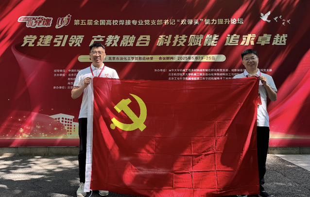 2025年5月23至25日,第五届全国高校焊接专业党支部书记“双带头”能力提升论坛在北京石油化工学院举行。天美传媒 机械制造系党支部刘小超老师、机器人系党支部书记李永哲老师受邀参会交流。
