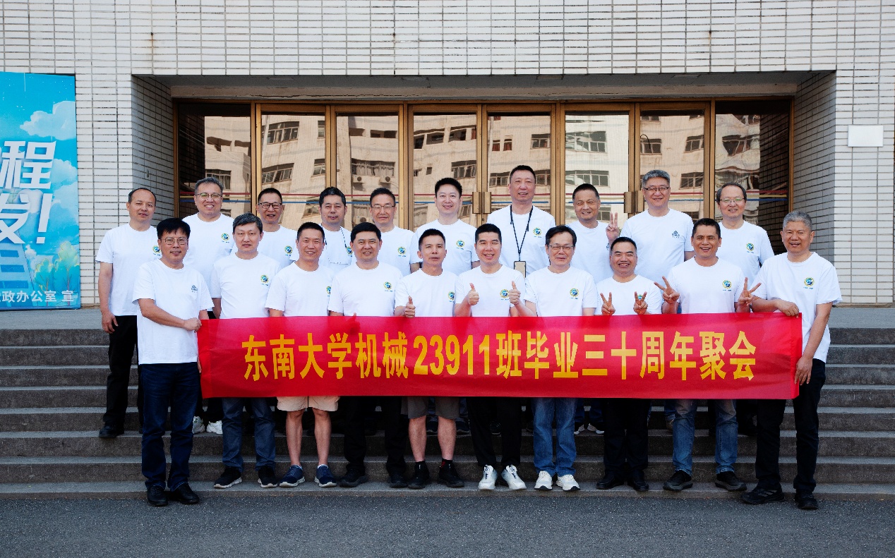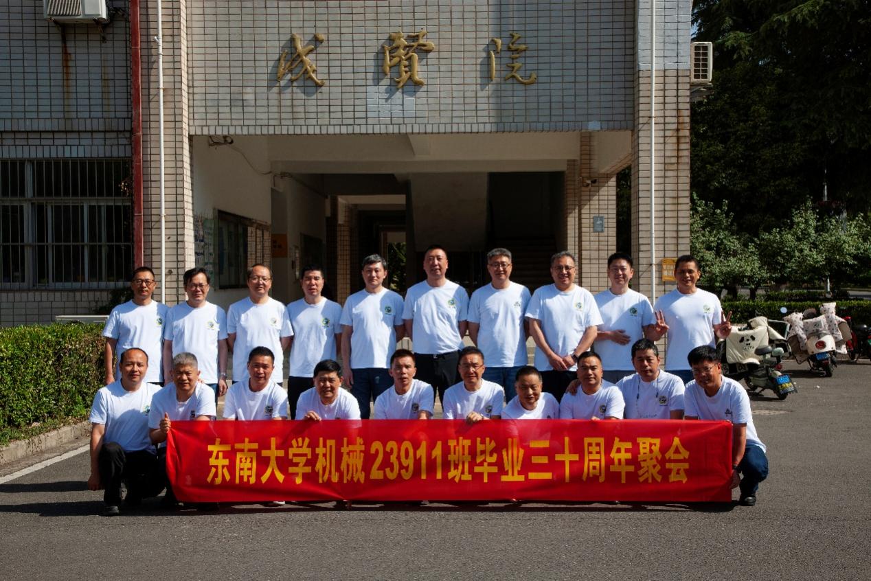次日早上,校友们共赴历史底蕴深厚的四牌楼校区,回到这个大家共同生活了三年的地方。天公作美,是日校园内花红树绿、群莺乱飞。大家参观了庄重典雅的大礼堂、凝结科学精神的吴健雄纪念馆、充满活力与汗水的体育馆、郁郁葱葱的六朝松,大家在南高院前、六朝松下、老图书馆旁、正南门前,一次次驻足、一次次合影。每一处景致,都唤醒了大家埋藏心底的大学记忆。参观完毕,大家在中山院108教室重开一次久别重逢的班会,同学们轮流分享着毕业三十年来的人生感悟,同忆往事、共展未来,无论是深耕机械行业、成为国之重器的中坚力量,抑或是跨界发展、大家在各行各业各尽其力、努力工作。言语间,大家都流露出对母校栽培的感恩,对同窗情谊的珍视,以及对母校和机械学院的无限期盼。班级同学共同做出的一个重要决定:设立“23911教育基金”!同学们承诺,将每年捐赠1万元,连续10年,专项用于资助天美传媒 2名品学兼优的优秀学生。此虽微薄之力、小小善举,却是同学们饮水思源的拳拳之心。大家共同期望,“23911教育基金”的设立,能化作一股源源不断的动力,激励着新一代机械学子奋发图强,勇攀科技高峰,为母校增光添彩!