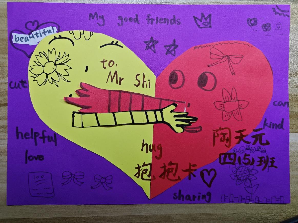 下图是我女儿制作的抱抱卡,送给施老师。