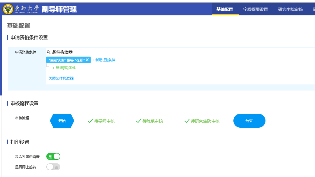 2.5.1研究生院管理员可以自由配置副导师审核流程 如图2.5.1