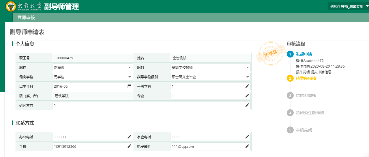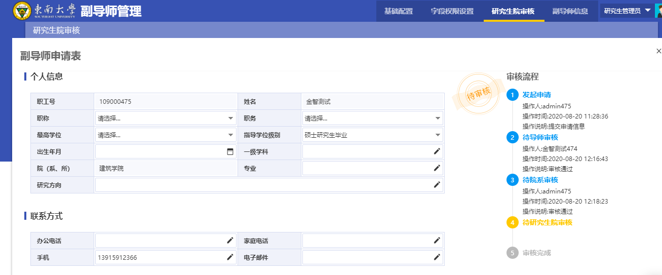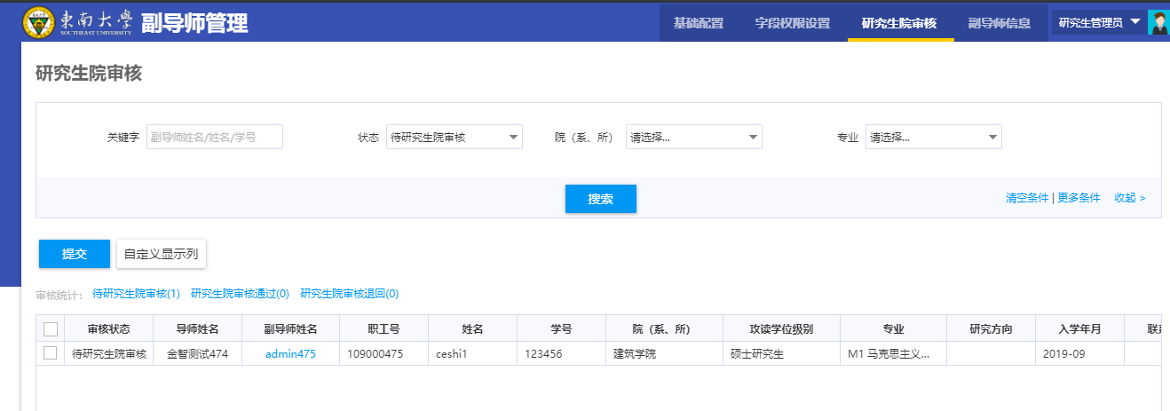 2.4导师、院系分管领导、研究生院管理员审核老师提交的申请记录