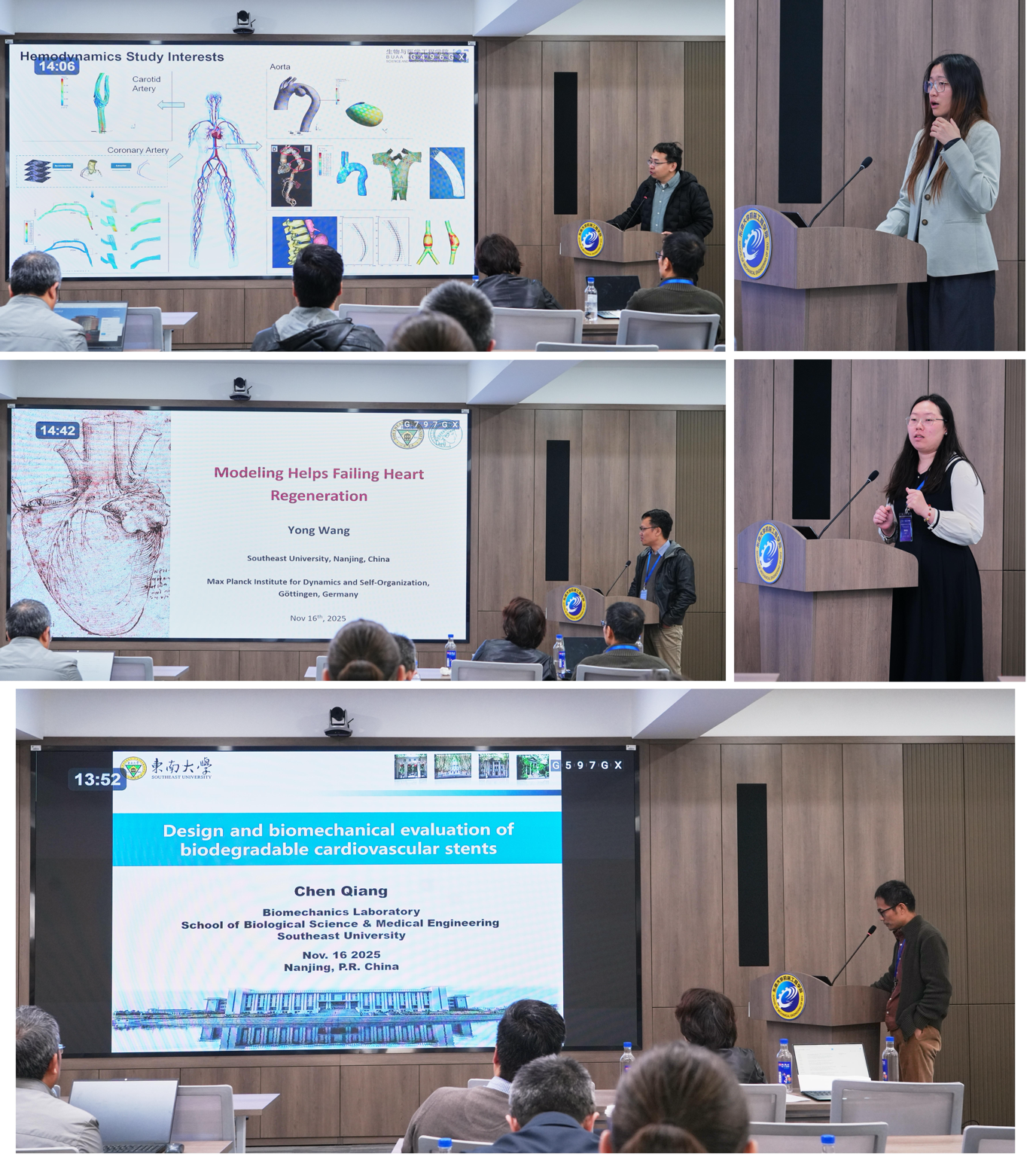 研讨会学术报告环节分为 “心血管器械生物力学设计与评估”、“心血管工程中的数值模拟” 两大主题板块,共设置了21场邀请报告,覆盖基础研究、技术研发、临床转化等多个维度。学术报告环节精彩纷呈,会议现场研讨气氛热烈,思想碰撞不断。