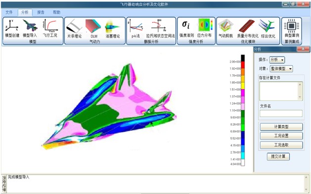 本软件集气弹分析、强度分析、气弹剪裁、综合优化等功能与一体,包含模型创建、气动理论建模、颤振分析、强度校核、结构优化等模块,具有界面友好、输入输出接口丰富、分析范围广、模块集成高等特点。