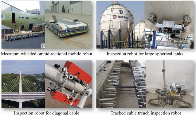 This research direction takes the specific working conditions of a robot into account. Through innovative structural design and intelligent control, we conduct applied research on special robots in complex and dynamic environments, including the omnidirectional mobile robots used in manufacturing large aircrafts, mobile robots employed for inspecting weld seams on large spherical tanks and inspecting cable-stayed bridges, as well as the tracked cable trench inspection robot.