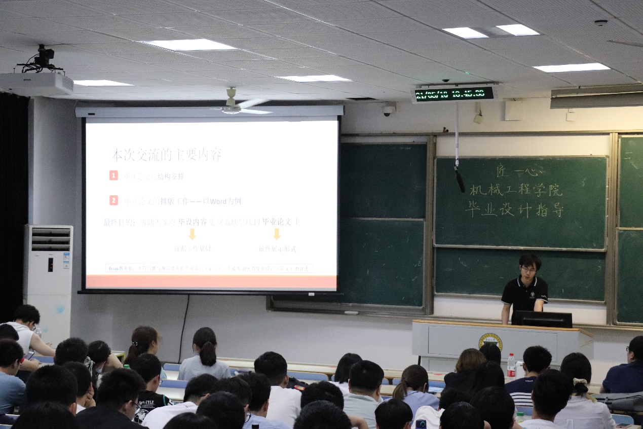 主讲人刘畅学长凭借自己独到的心得和丰富的阅历,给学生讲解并分析了许多毕业论文的实际范例,分享了很多实践性强且帮助性大的毕业论文写作与排版技巧。