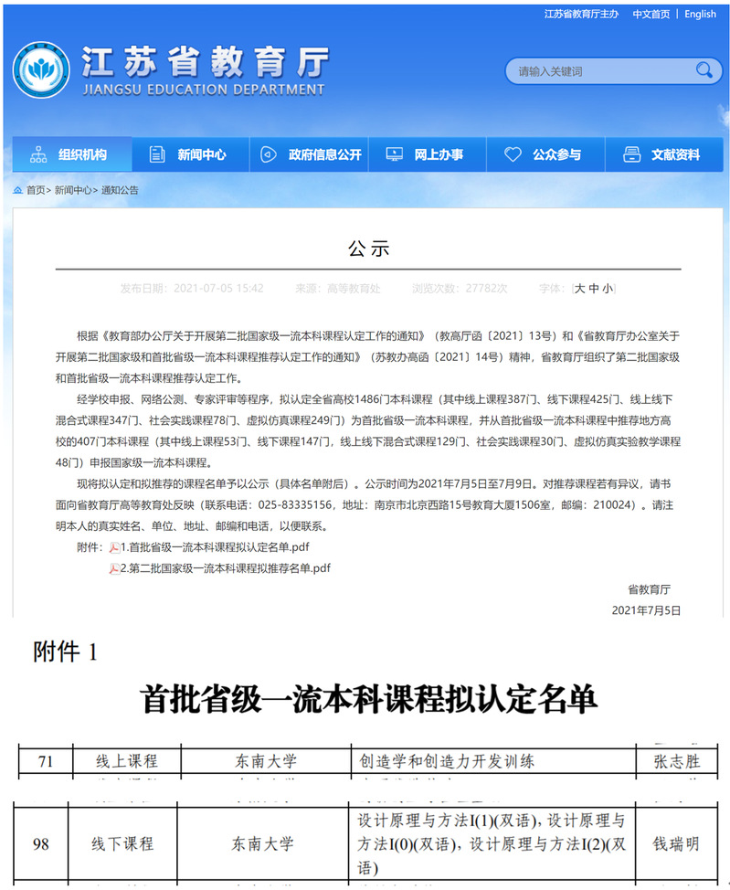 江苏省教育厅于7月5日发布首批省级一流本科课程认定结果的公示,天美传媒 张志胜教授负责的《创造学与创造力开发训练》获批线上一流本科课程,钱瑞明教授负责的《设计原理与方法Ⅰ(1)(双语)、设计原理与方法Ⅰ(0)(双语)、设计原理与方法Ⅰ(2)(双 语)》获批线下一流本科课程,并且两门课程都获推荐申报第二批国家级一流本科课程。这是继贾民平教授的《机械工程测试与控制技术(2)》获得首批国家级一流本科课程之后,天美传媒 教学工作取得的又一突破性成果。下一步,学院将充分发挥一流课程的示范引领作用,进一步加大一流课程建设力度,持续推进课程改革创新,着力打造更多具有高阶性、创新性和挑战度的“金课”,推动课堂教学水平和人才培养质量再上新台阶。