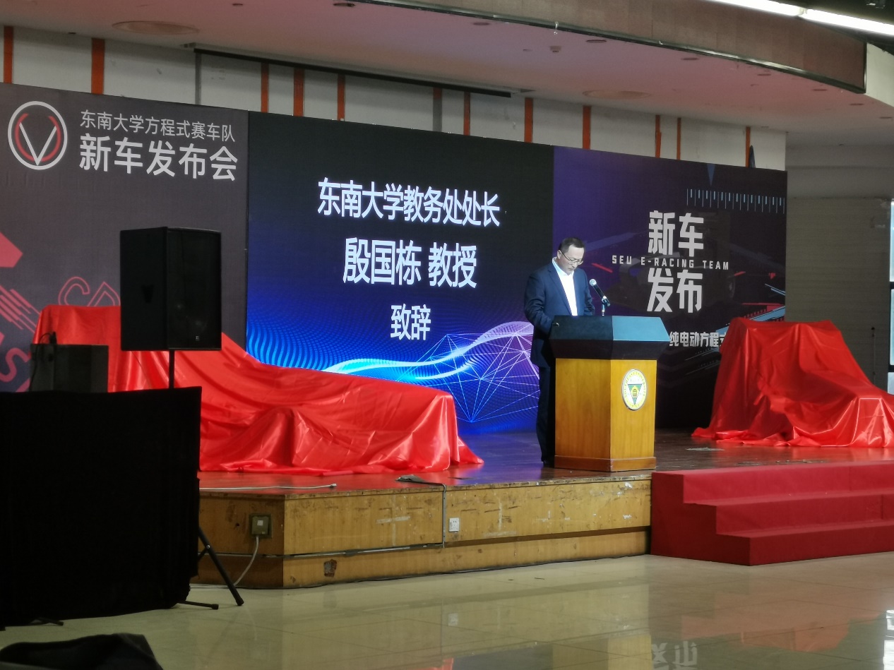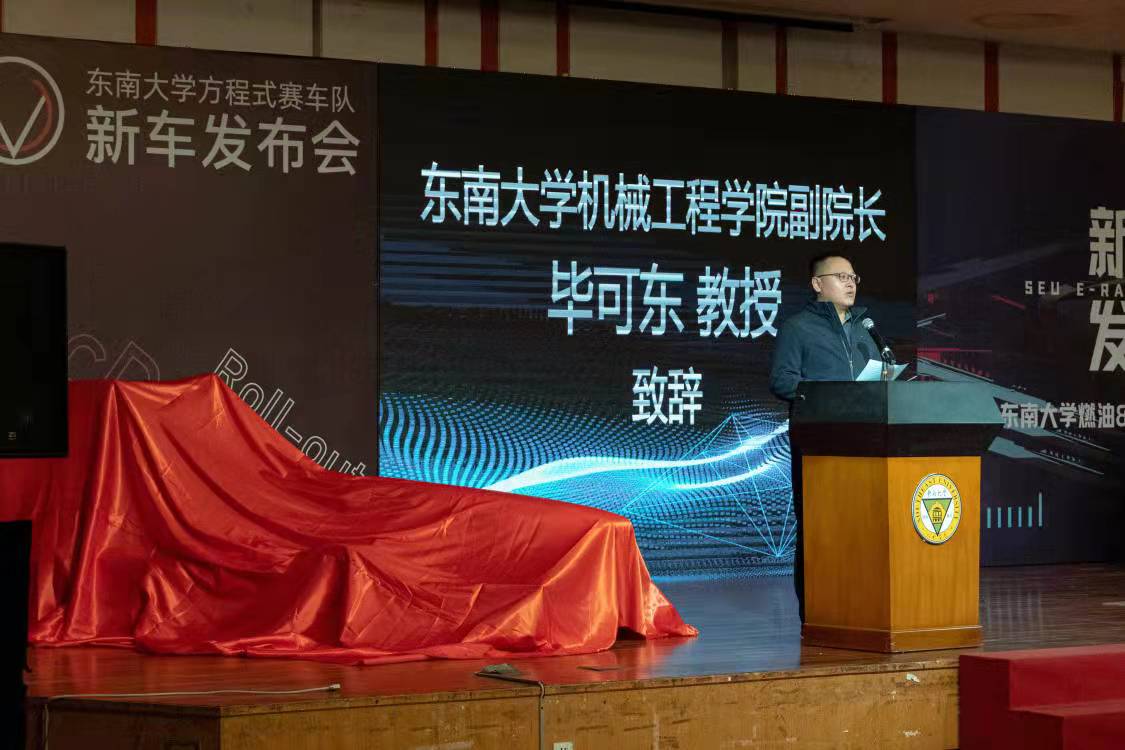天美传媒 副校长金石致辞。发布会上,他对学生们开拓创新,自行设计制作的燃油与电动方程式赛车给予了高度评价,并对天美传媒 在创新创业方面取得的成绩给予了充分肯定。他希望天美传媒 燃油&纯电动方程式车队能够继续坚持“品质、精致、极致”的造车理念,发扬东大人特有的工匠精神、家国情怀,充分展现新时代大学生的风采,把车队打造得越来越好、越来越强!