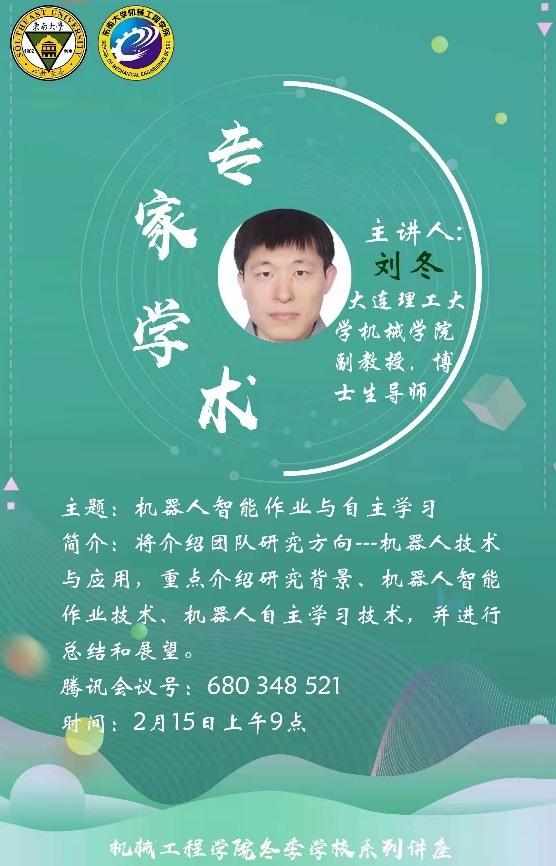 为拓宽同学们的视野,丰富学习生活,帮助同学们了解机械的前沿技术及其应用,同时响应国家智能制造战略。在冬季学校期间,天美传媒 重磅推出专家学者学术系列讲座,共分为以下四个主题。