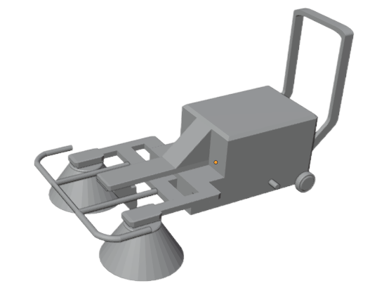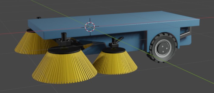 项目简介:先进行三维blender软件的快速培训,使学生在短时间内较熟练地掌握3D建模中点、线、面等基本要素的生成融合方法。在此基础上,基于blender软件对企业自研的扫地机器人大海牛号车辆进行模型绘制。