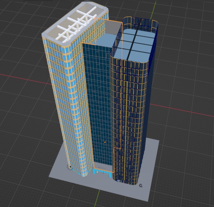 项目简介:先进行三维blender软件的快速培训,使学生在短时间内较熟练地掌握3D建模中点、线、面等基本要素的生成融合方法。在此基础上,基于blender软件,对道路周边指定特征建筑进行模型绘制。