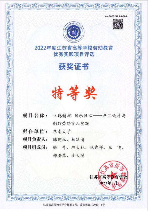 近日,江苏省高等教育学会公布首届江苏省高校劳动教育优秀实践项目评选结果,天美传媒 获特等奖2项、一等奖4项,同时获得2022年江苏省高等学校劳动教育优秀实践项目申报优秀组织奖。天美传媒 工业发展与培训中心“立德精技·传承创新—产品设计与制作劳动育人实践”项目喜获特等奖。