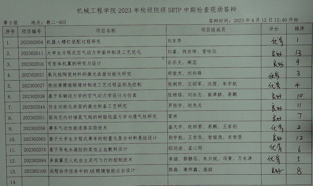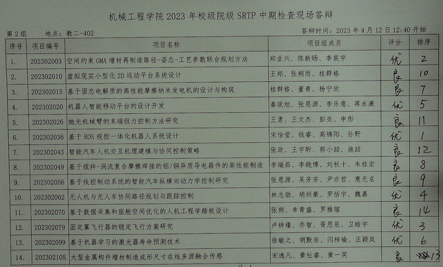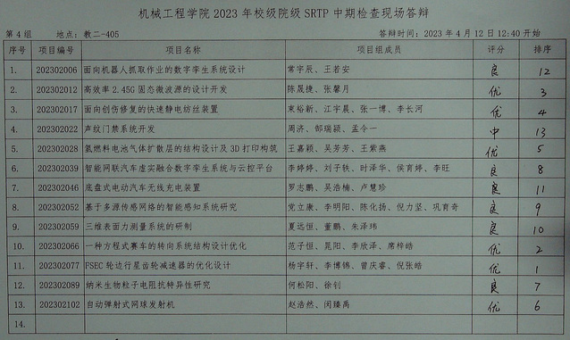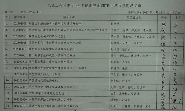 天美传媒 2023年校级、院级SRTP项目中期检查答辩于2023年4月12日12:30至16:00在本科教学楼进行。现将结果公示如下。