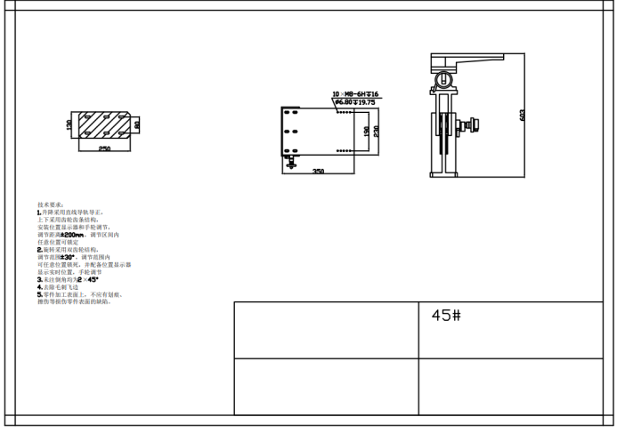 2、根据设计要求,完成了扭矩仪支架、工装阀块及转接头的图纸设计。