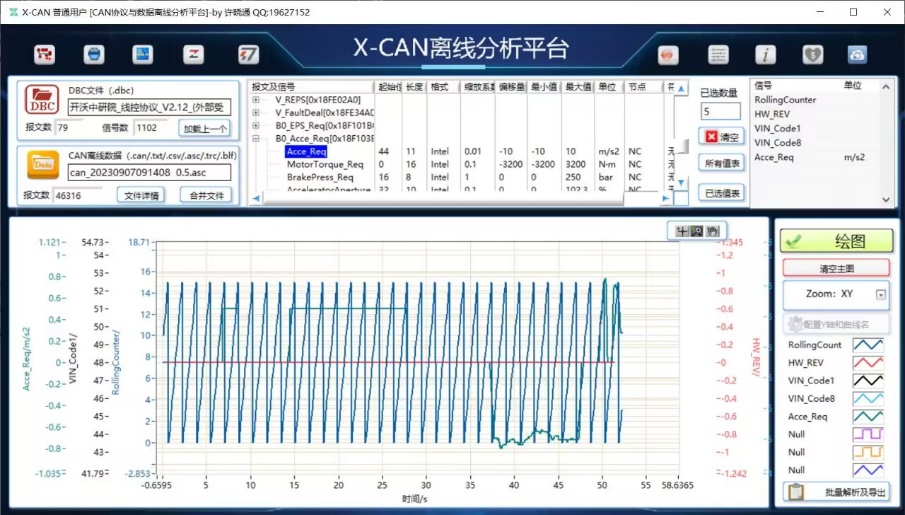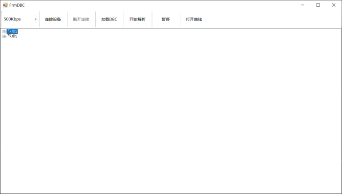 2.DBC Analysis功能采用C#编写,选择不同波特率和节点,连接设备并加载DBC,可获得输出曲线。