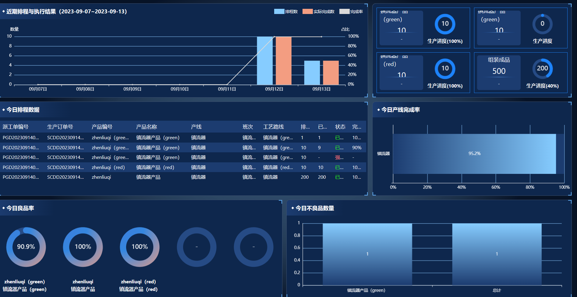 1.MES系统生产操作可视化数据。通过对南高智能制造管理系统(MES)的不同模块进行逐一设置,关联,确认;在生产订单模块下达任务后顺序进行,最终将流程结果显示在生产看板上,体现MES系统的便捷和性能。