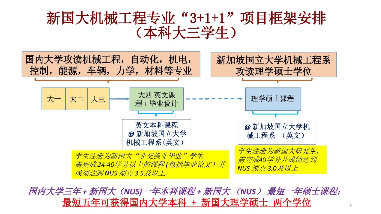 2.本项目不是联合学位项目,因此第一个“+1”结束时,学生不能申请NUS学位。